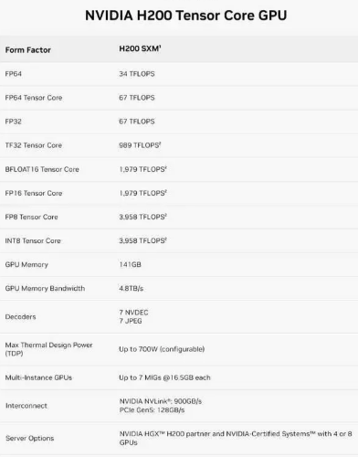 显存: 每块 H200 GPU 显存 141GB,8 块总显存 1.128TB
