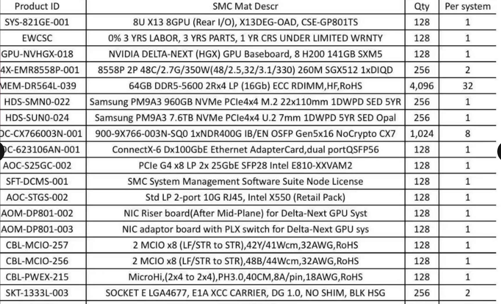 网络:10G/25G/100G 以太网网卡及 400G InfiniBand 网卡(每台 8 块),搭配 NIC 转接 / 适配板与高速线缆。