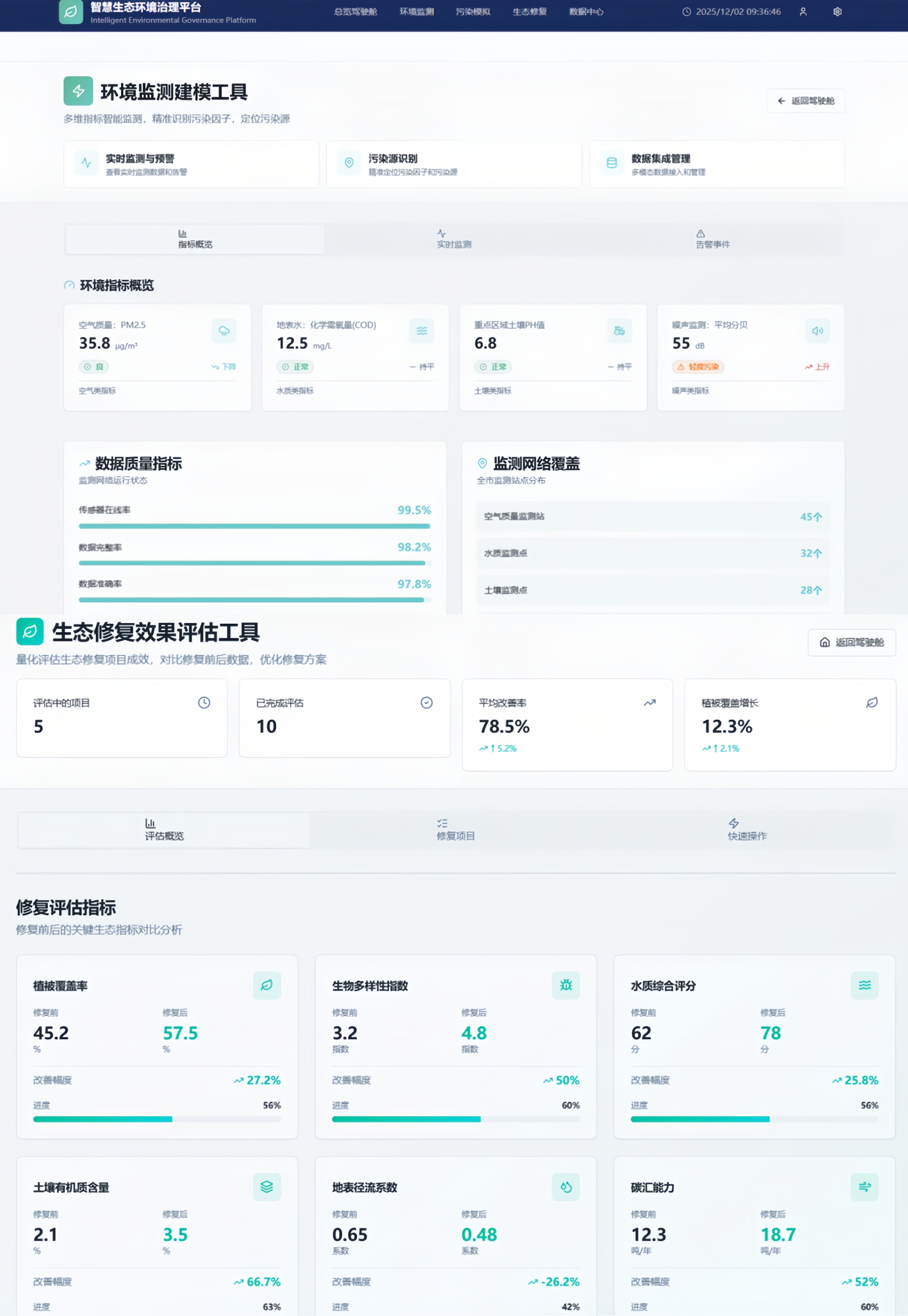 生态修复效果评估工具通过对比分析修复前后的生态数据,量化评估植被覆盖、生物多样性、水质改善等方面的成效,辅助优化生态修复方案。