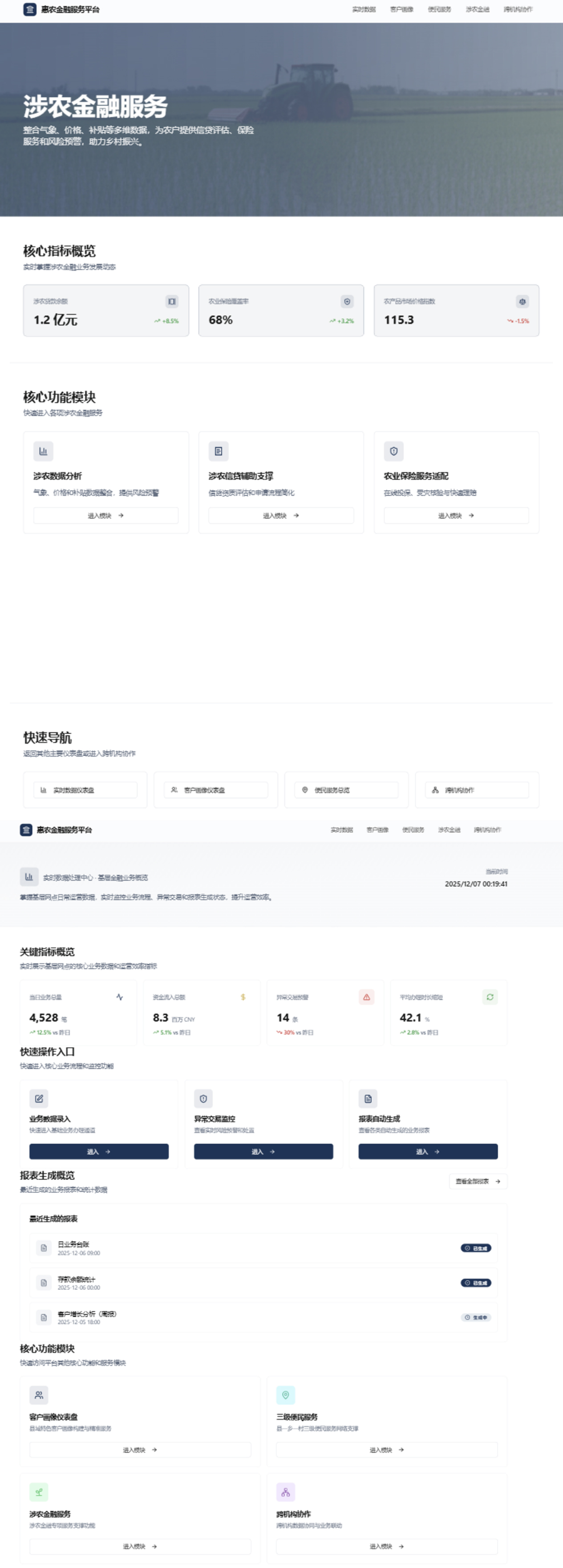对存款、贷款、支付等日常业务数据进行实时汇总与分析,使基层网点业务办理效率提升40%以上;